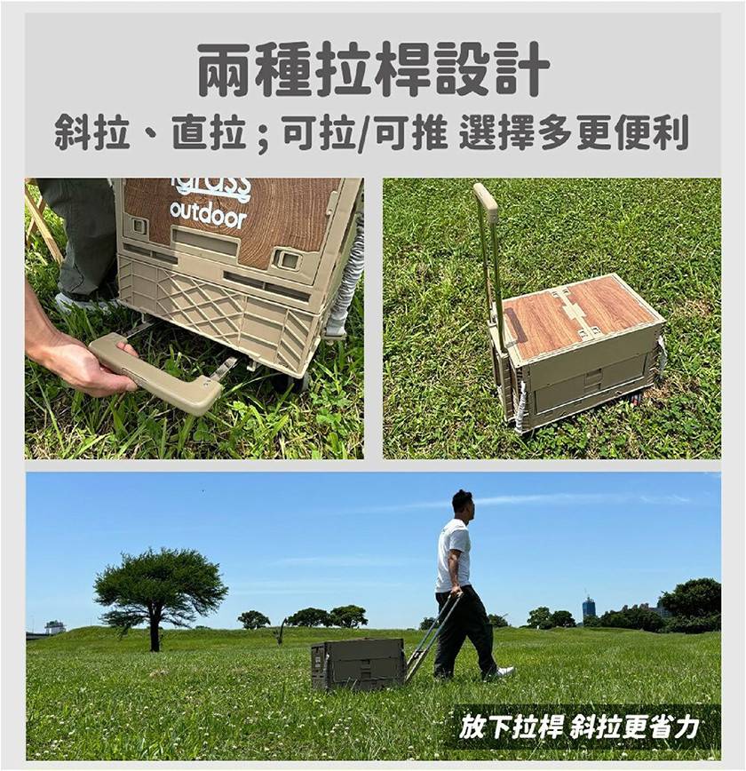 6.推車手拉桿由底部拉出順著往上折,可斜拉直拉