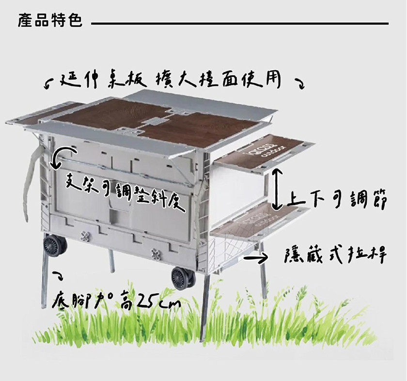 4.桌板設置在左右兩側,使用下方鐵製支撐杆固定延伸