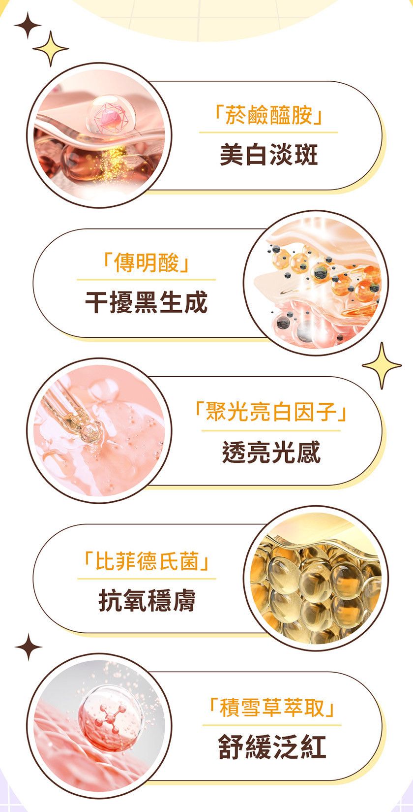 -去黃煥白穩定膚況改善黯沉,使肌膚明亮提升光澤感