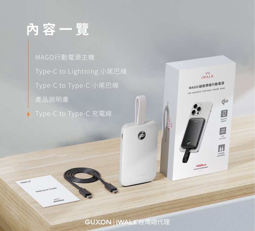 品牌品名:iWALK MAGO磁吸帶線行動電源
