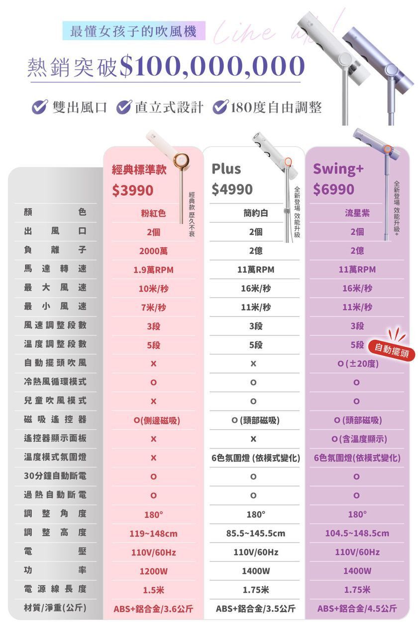品牌品名:meekee小嵐 立式吹風機Swing+.贈小嵐無線離子夾