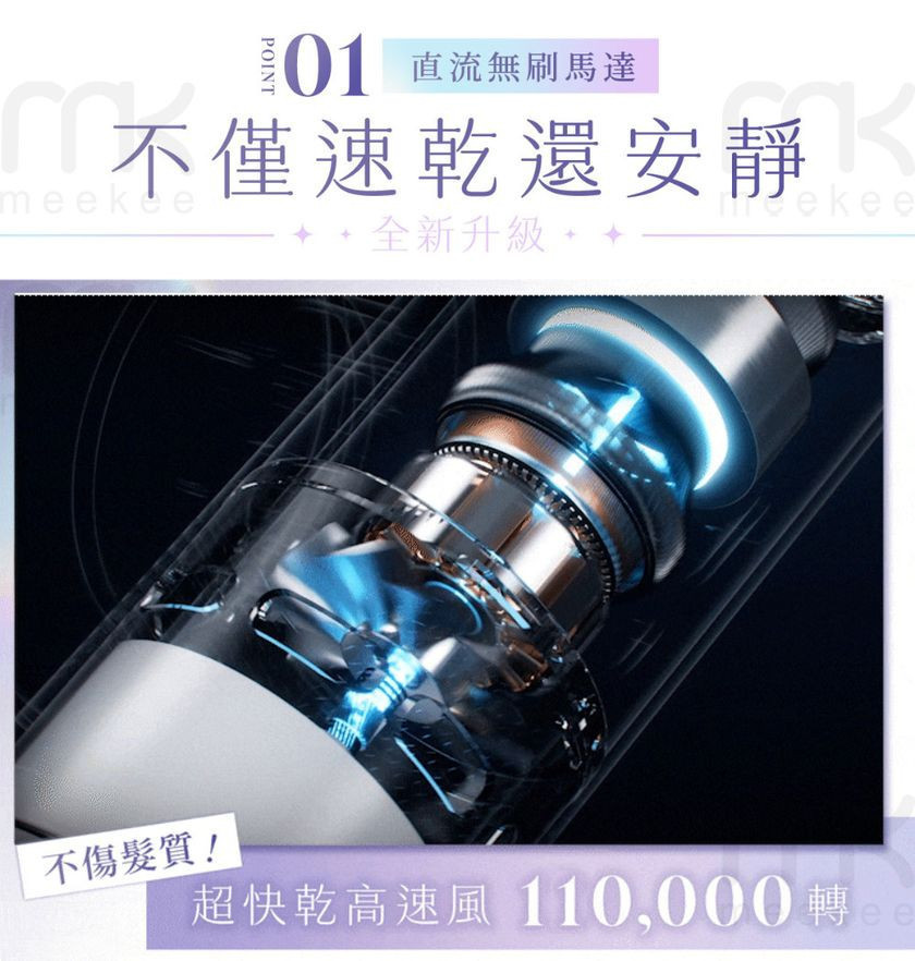 -110,000rpm轉馬達,雙出風口,高速吹乾