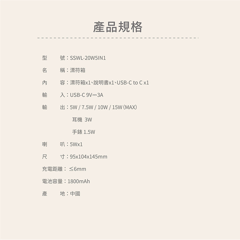 1.當無線充電器和無線喇叭工作時,短按開關燈