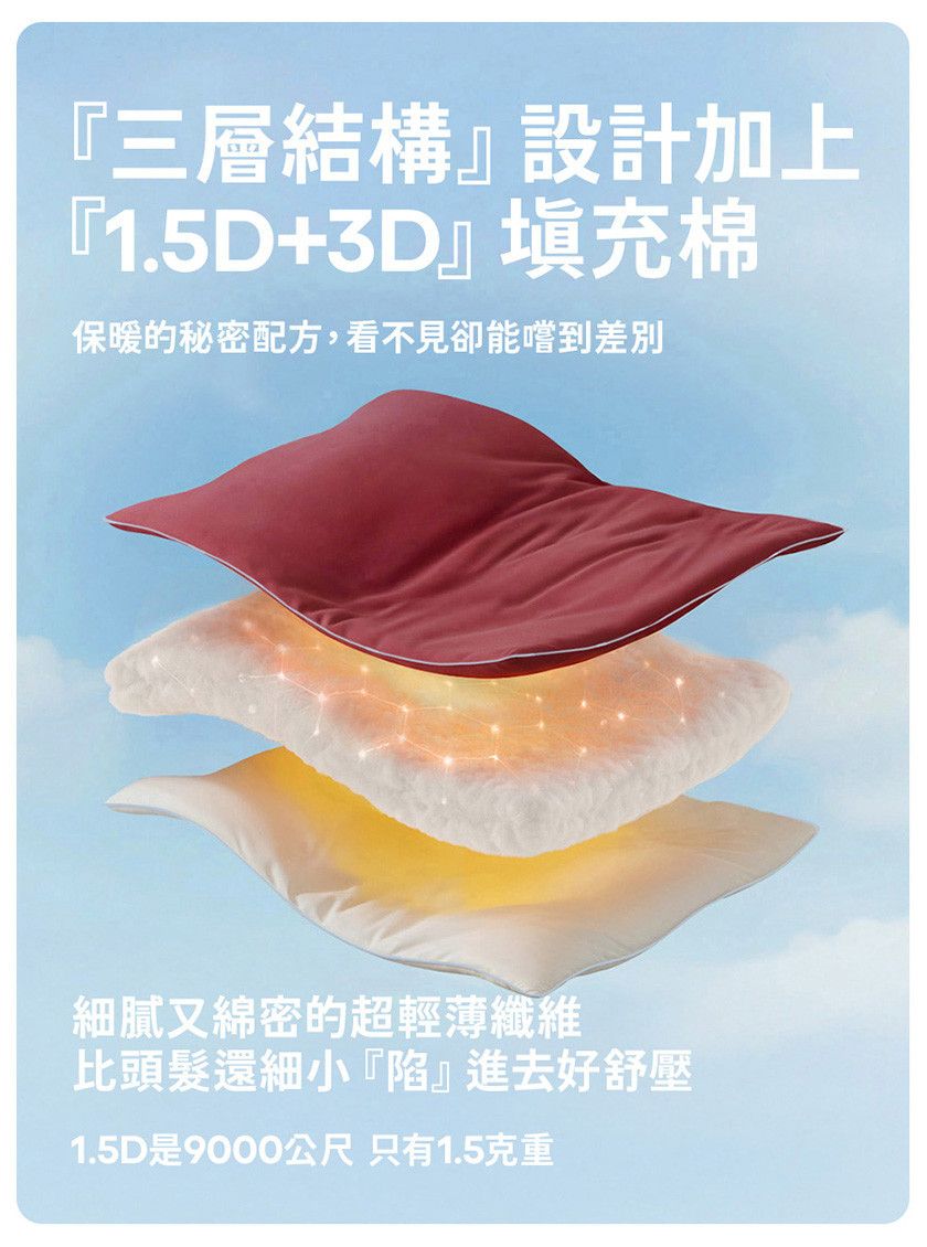 -1.5D+3D超細纖維填充棉,輕量保暖,觸感Q彈透氣性