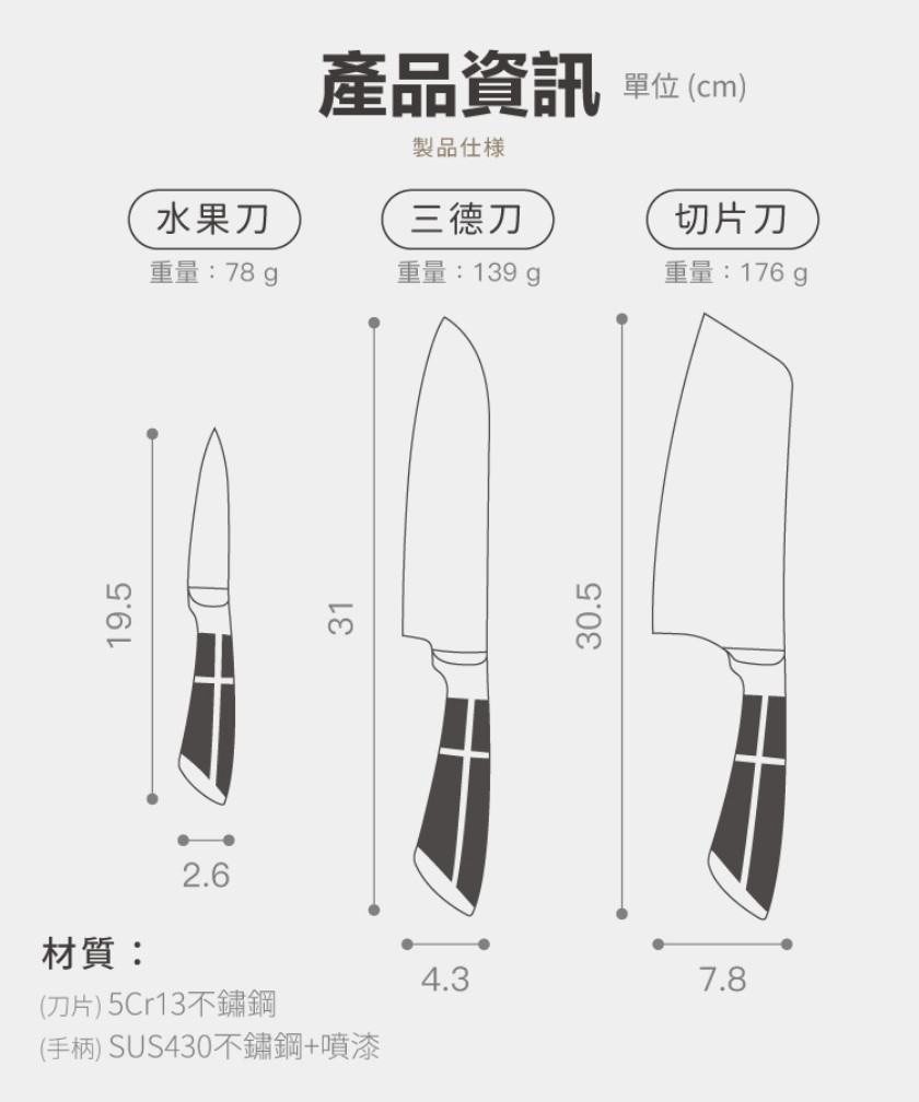 內容物:水果刀*1+切片刀*1+三德刀*1