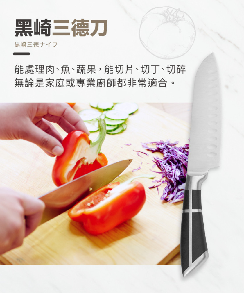 【三德刀】適合處理蔬菜、肉類、魚類等多用途切割