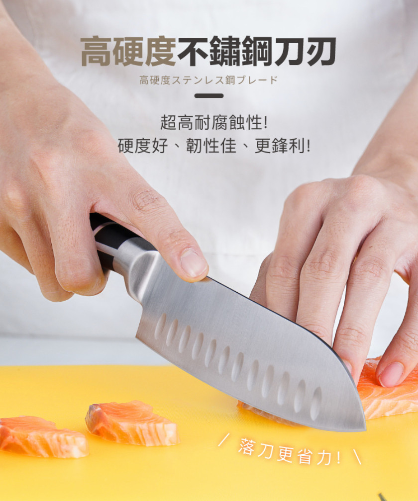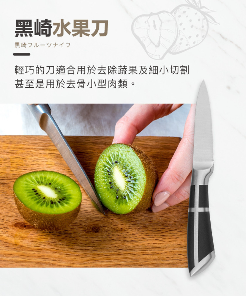 ※建議搭配木製或塑膠砧板,避免使用玻璃、石材砧板,以免刀刃快速耗損