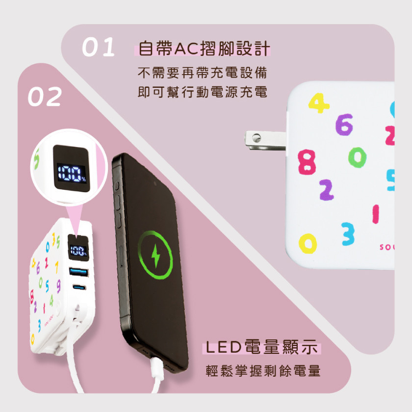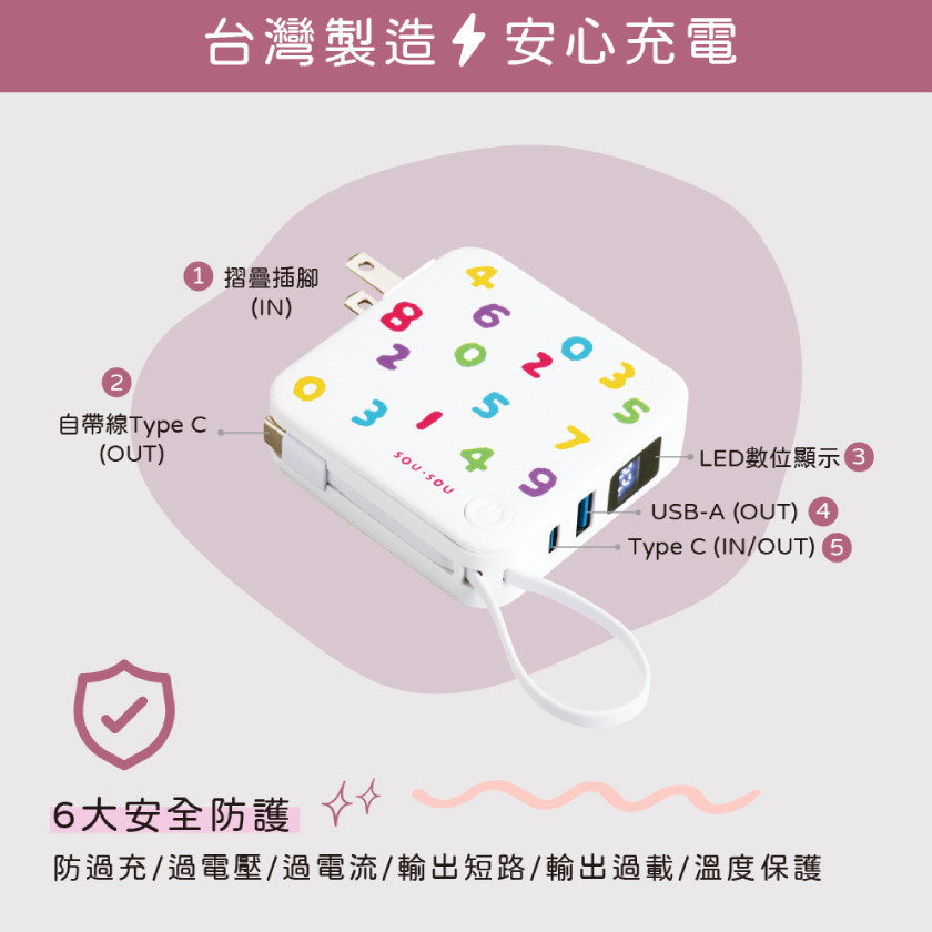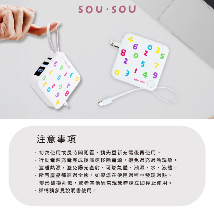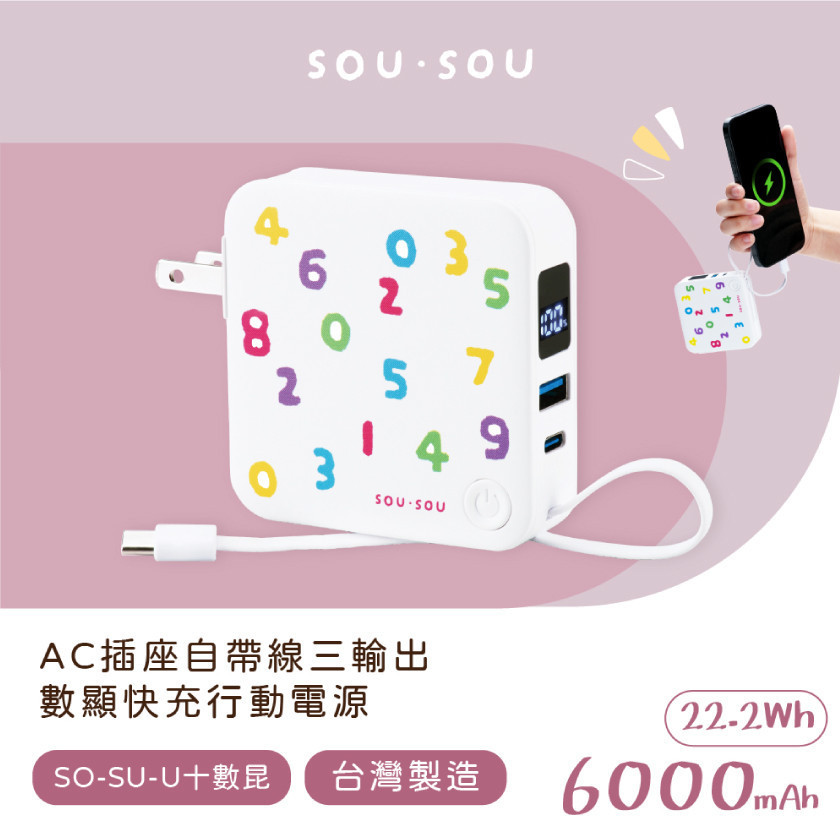 品牌品名:SOU.SOU十數昆 AC插座自帶線三輸出數顯快充行動電源