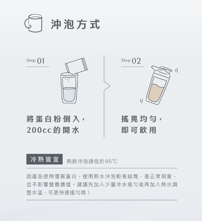 9.建議先加入少量冷水搖勻後再加入熱水調整水溫,可更快速搖均勻