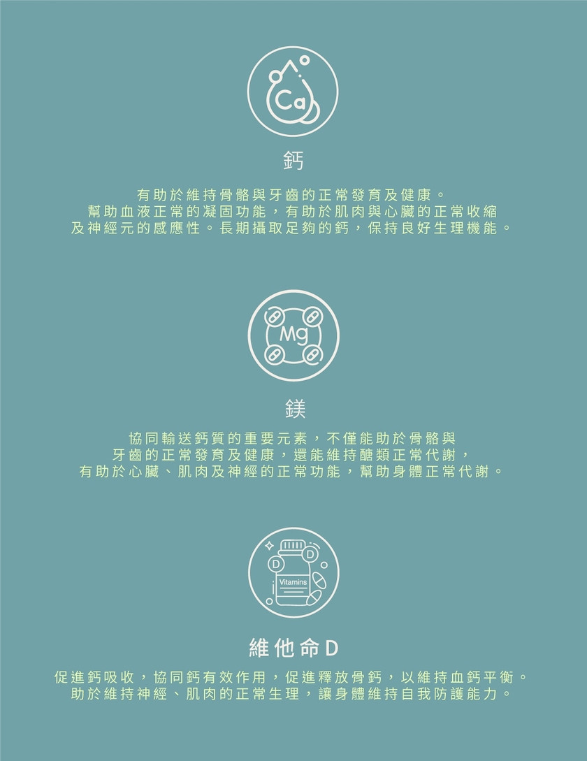 -黃⾦比例鈣鎂D天然無負擔,全⽅位補充營養