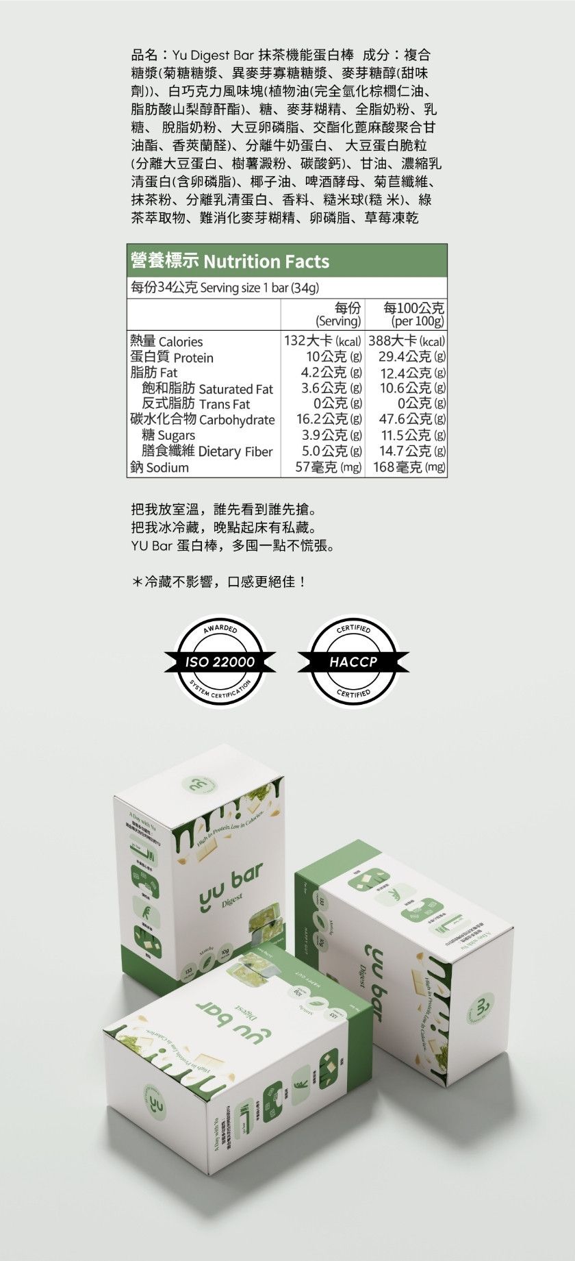 【抹茶】本產品含有大豆、牛奶及其製品,生產製程廠房,其設備或生產管線有處理堅果、花生、芝麻、含麩質穀物、魚類及其製品,對其過敏者請避免食用