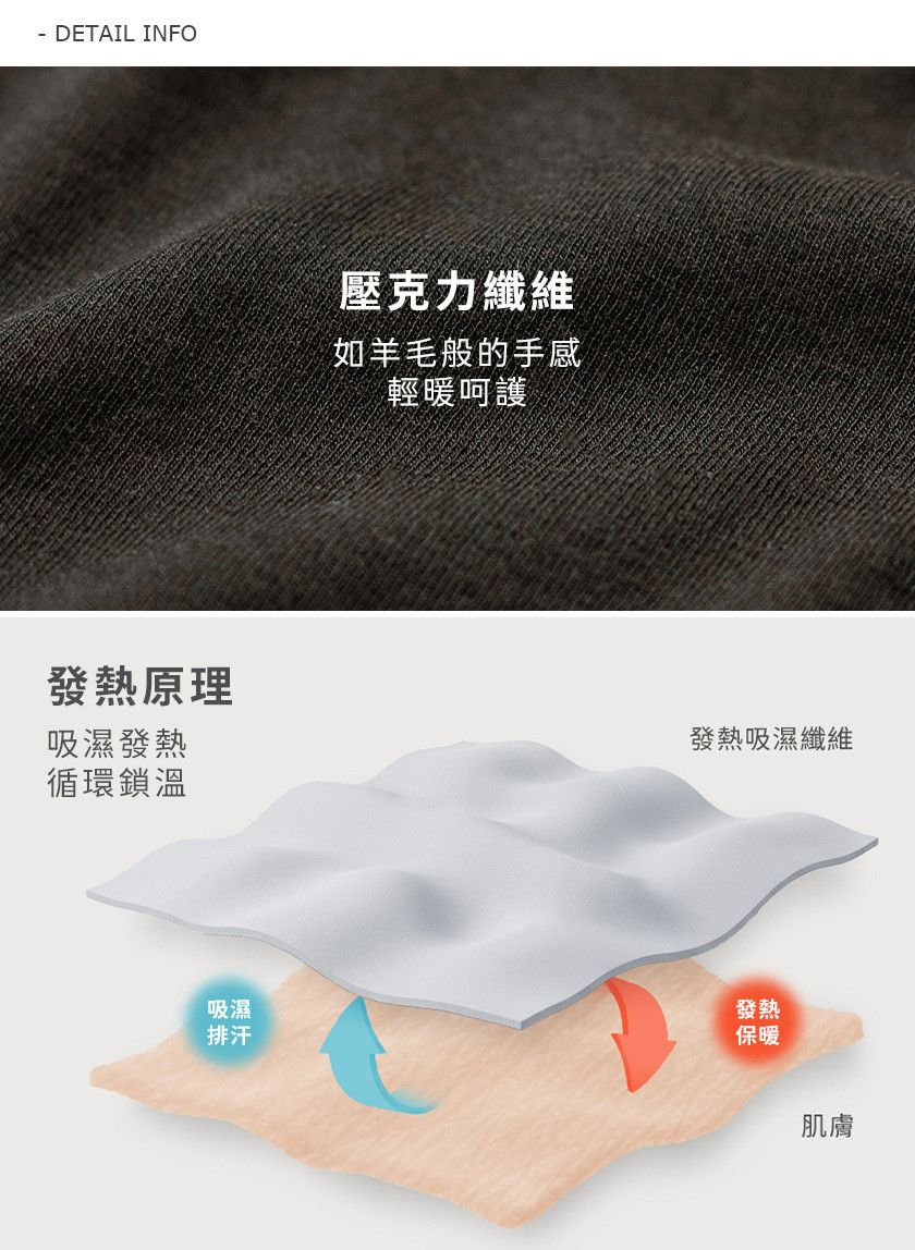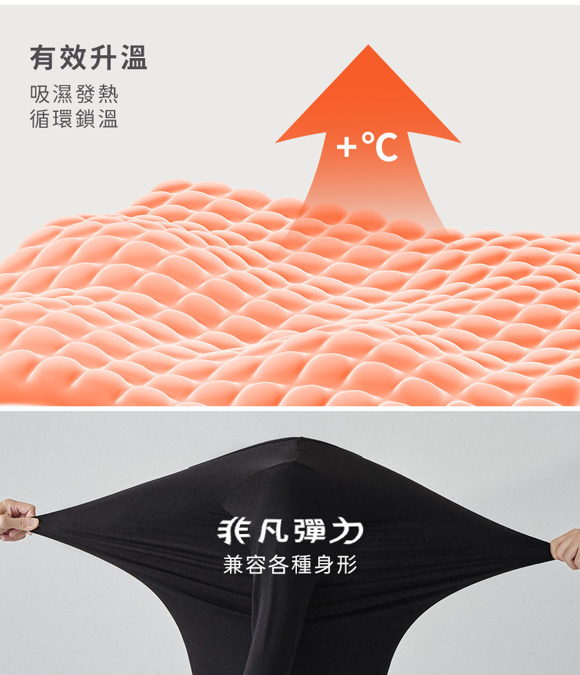 -特殊纖維技術具備吸濕發熱功能 迅速感應體溫變化並有效升溫
