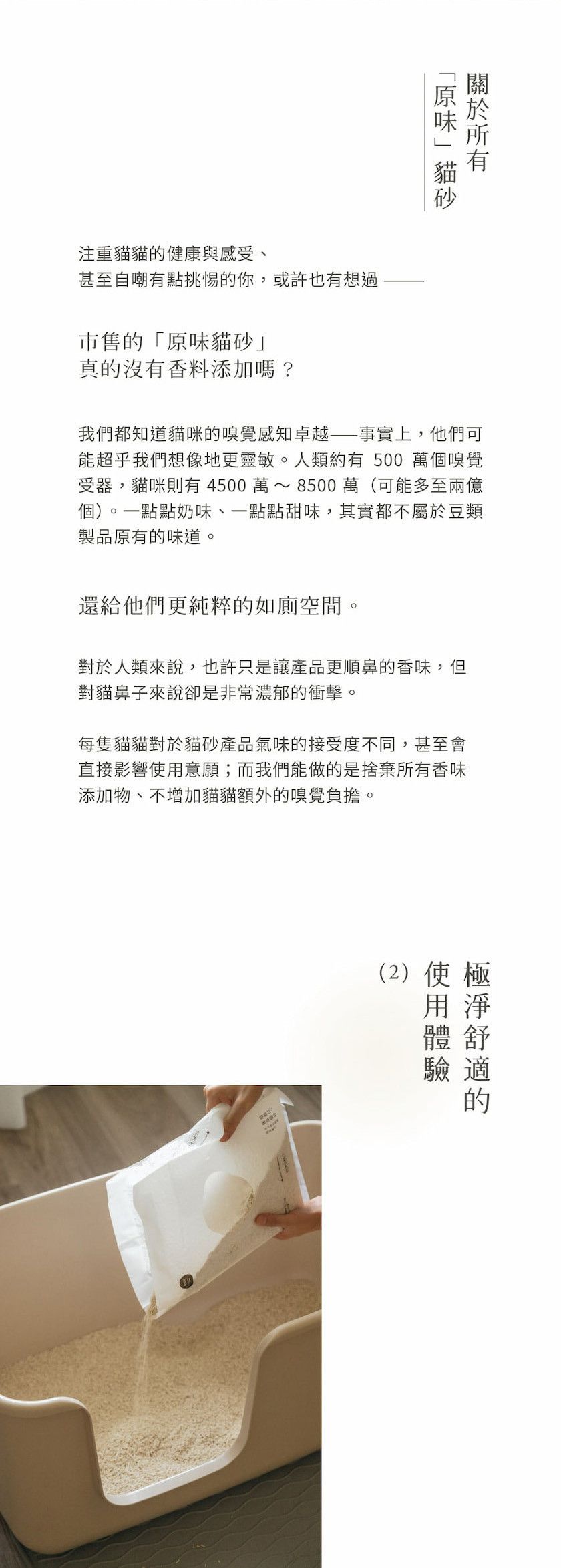 5.豆腐砂採用天然豌豆纖維,不額外添加香精,因此帶有天然豆味,若對於豆味較為敏感的飼主,建議您謹慎評估後再購買
