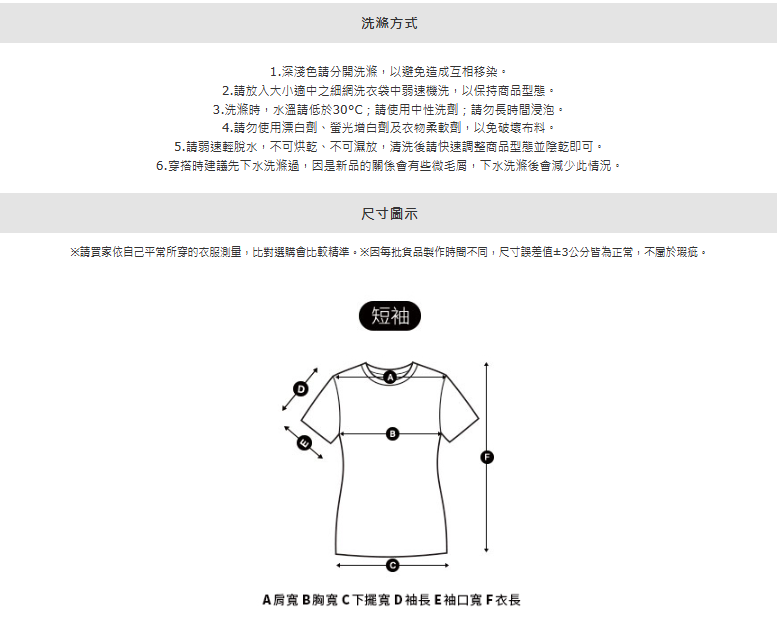 7.服飾洗滌後,縮水5%以內為合理範圍。