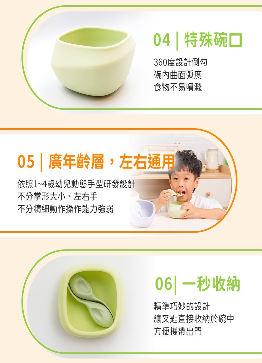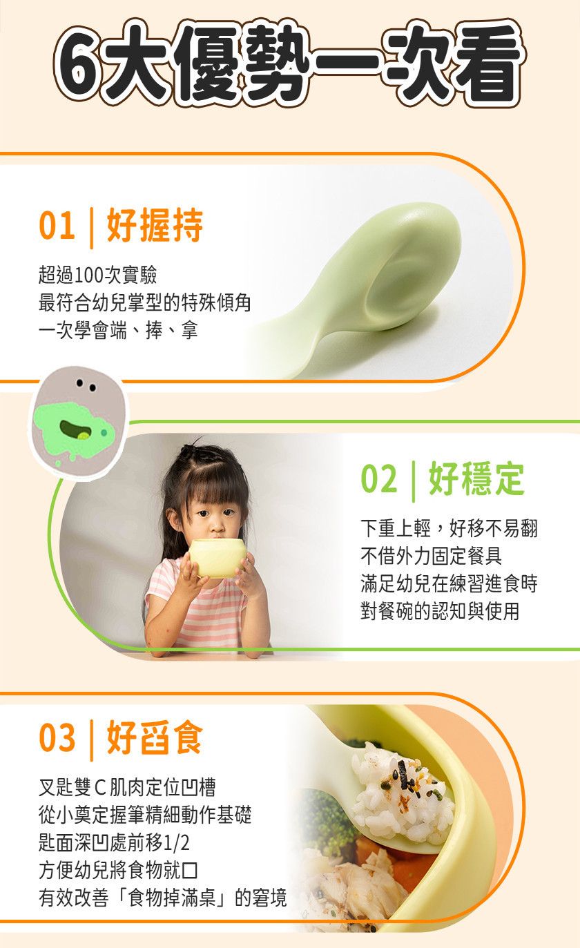 -專為1-4歲幼兒量身打造,協助寶寶發展3點,抓握、動作控制與手腕靈活度,建立進食信心