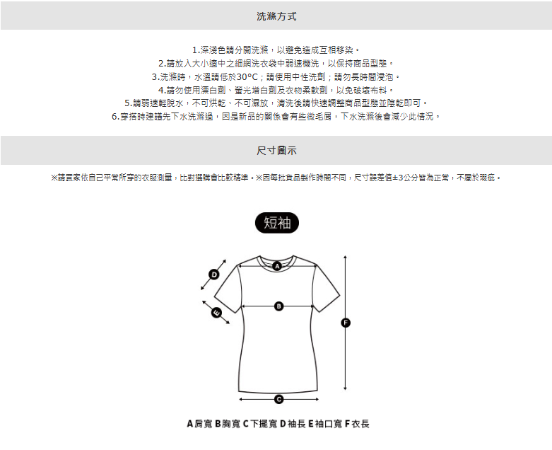 7.服飾洗滌後,縮水5%以內為合理範圍。