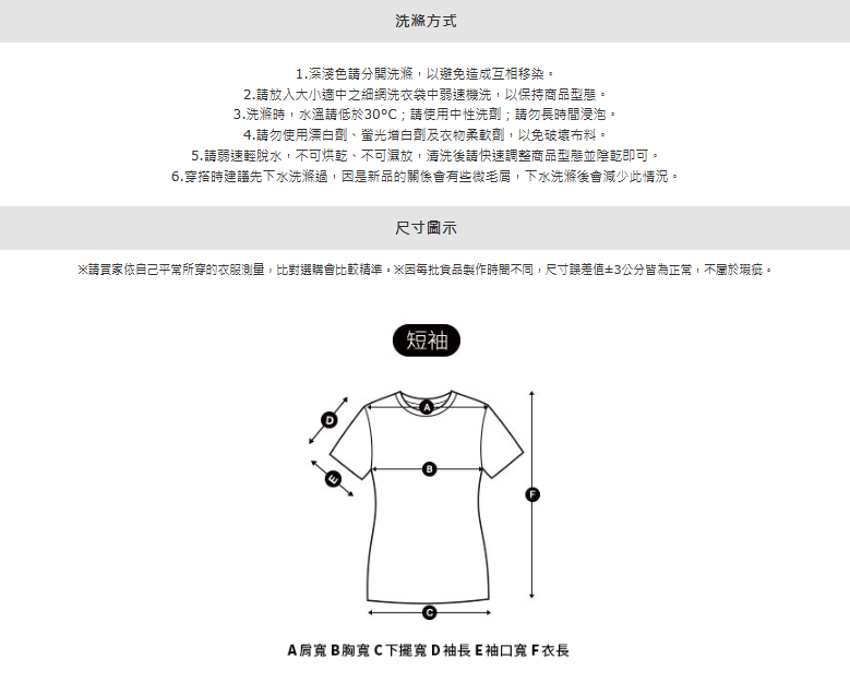 7.服飾洗滌後,縮水5%以內為合理範圍。