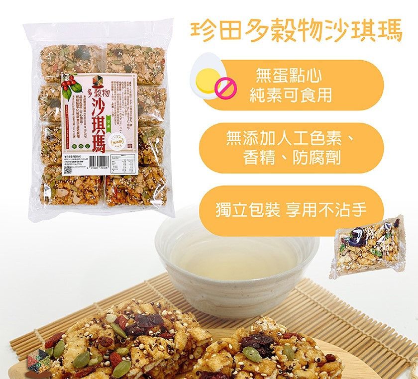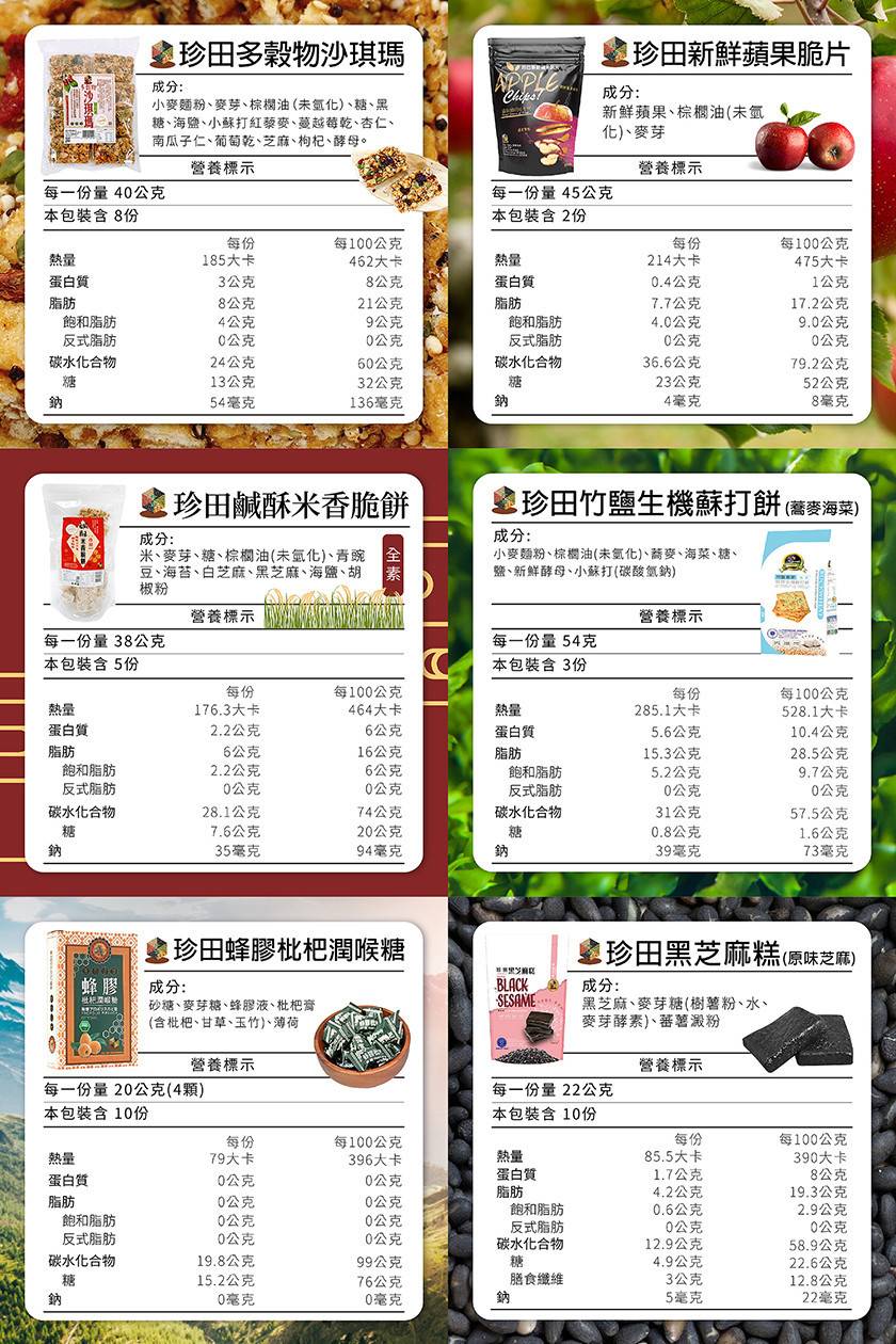 -健康零食:多穀物沙其馬、蘋果脆片、鹹酥米香、竹鹽海菜蘇打餅