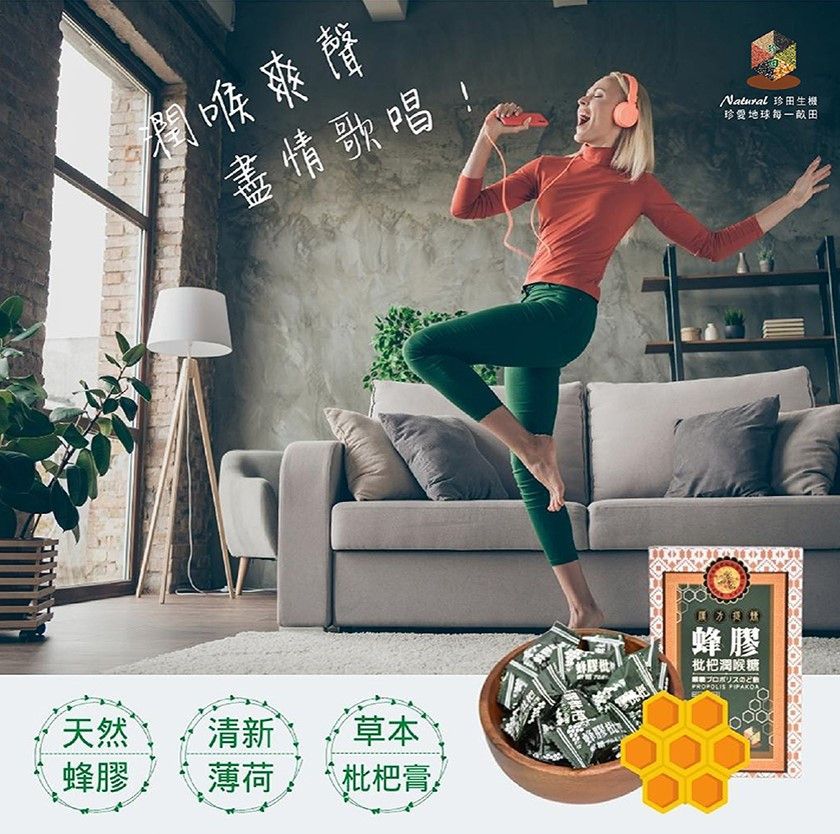 成分:砂糖、麥芽糖、蜂膠液、枇杷膏(含枇杷、甘草、玉竹)、薄荷