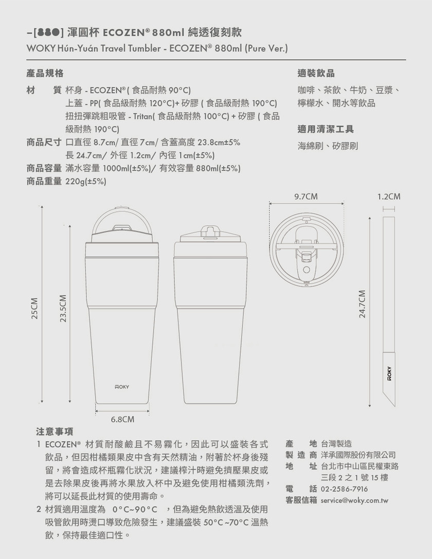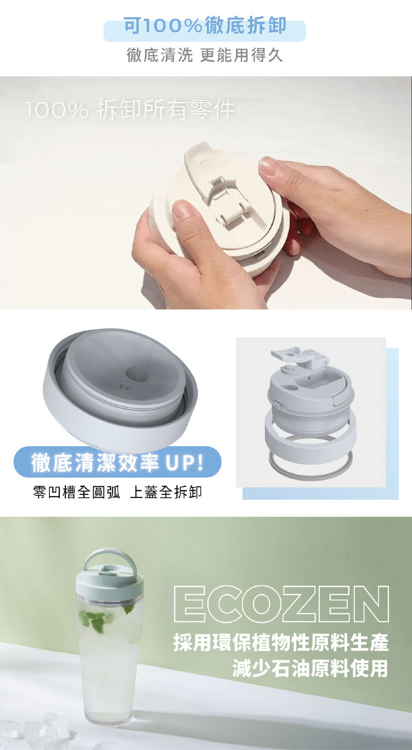 (ECOZEN 材質耐熱度90°C,杯身為單層設計,熱飲盛装溫度建議低於70°C,避免透溫燙手)