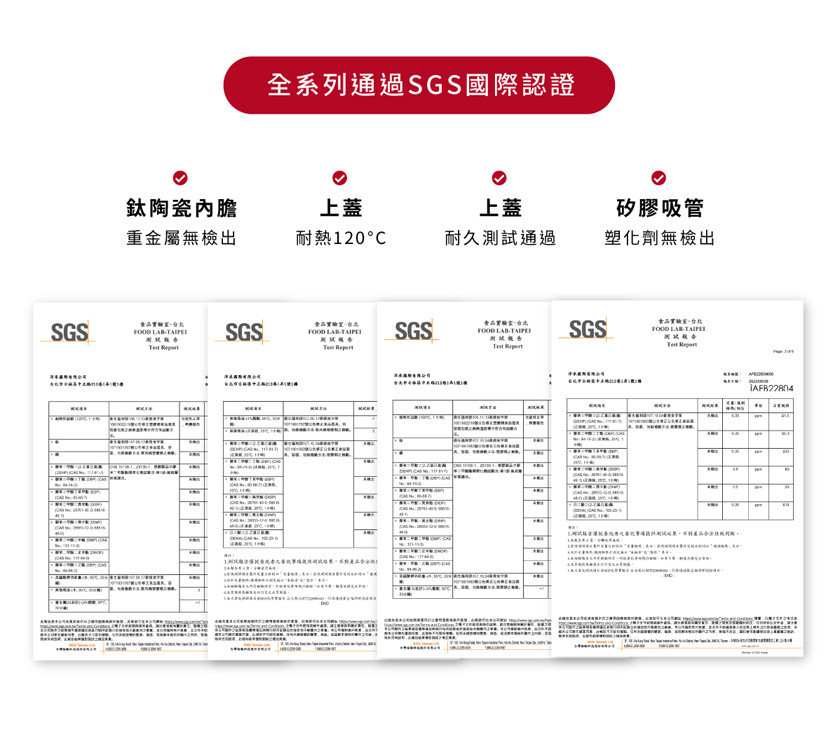 材質/成分:瓶身內膽-304不銹鋼+鈦陶瓷塗層、瓶身外層-304不銹鋼、上蓋-PP+矽膠(食品級耐熱190°C)、密封圈-矽膠(食品級耐熱190°C)