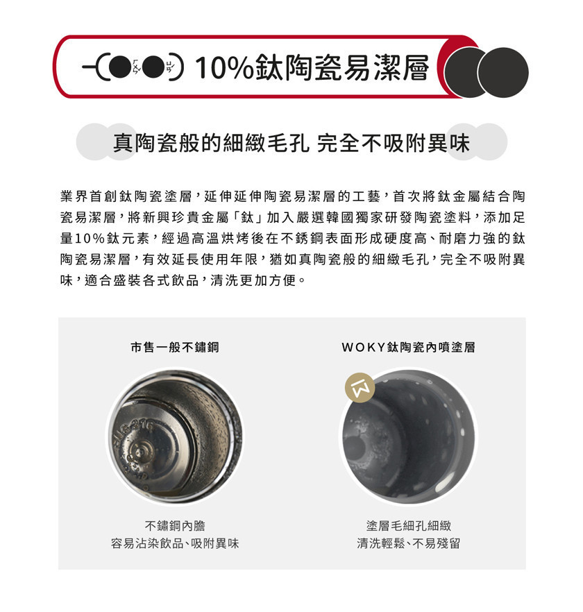 2.鈦陶瓷 / 雙層陶瓷易潔層瓶口屬精細工藝,請勿撞擊或摔落,鎖蓋時也勿過於用力或擠壓,以免造成損壞無法正常使用