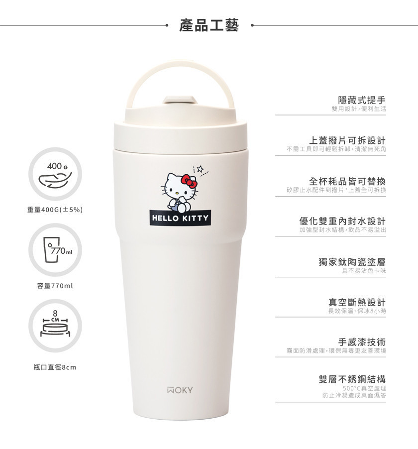 品牌品名:WOKY X SANRIO 渾圓杯鈦陶瓷770ml