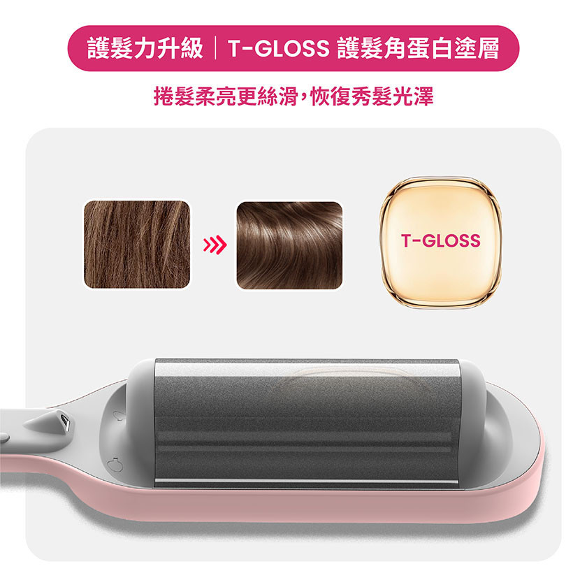 -護髮力升級,T-GLOSS護髮角蛋白塗層,捲髮柔亮更絲滑,恢復秀髮光澤