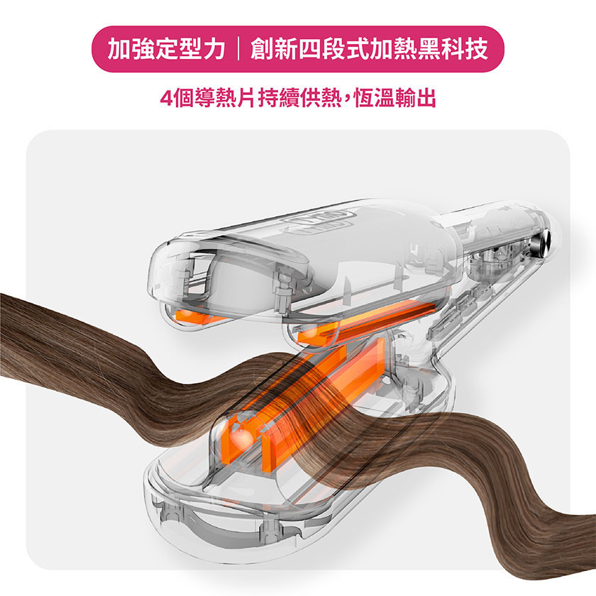 -定型力升級,創新4段式加熱黑科技,4個導熱片持續供熱,恆溫輸出