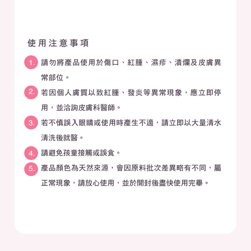 10.產品顏色為天然來源,偶會因萃取原料批次差異略有不同屬正常現象,請放心使用