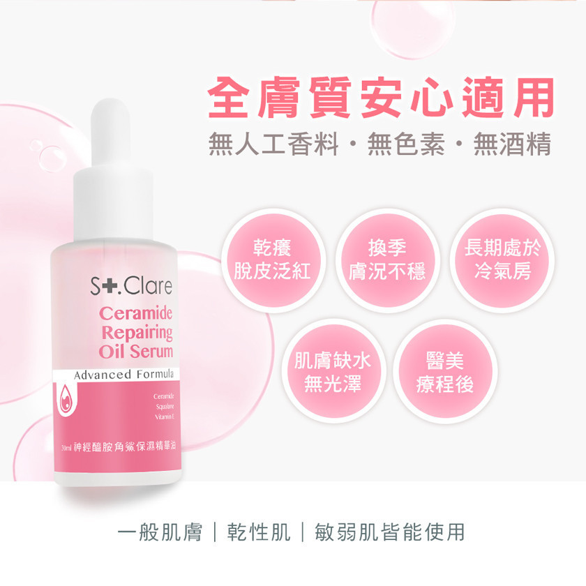 品牌品名:St.Clare聖克萊爾 神經醯胺角鯊保濕精華油.輕盈版