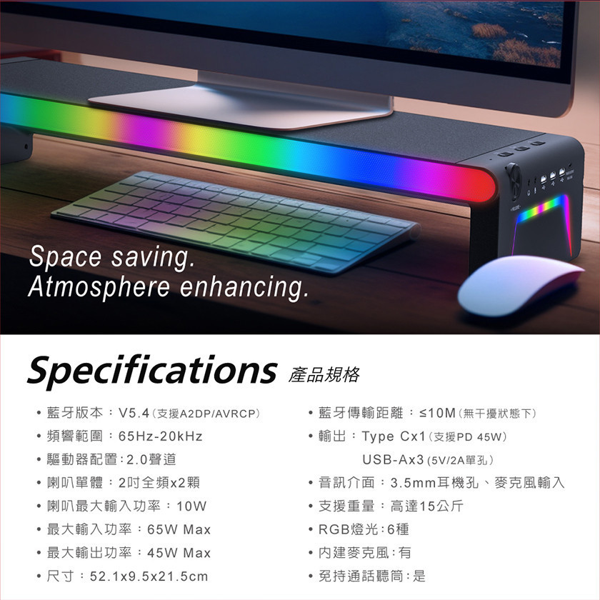 -功能多合一,螢幕架、藍牙喇叭、HUB、氛圍燈等全包辦
