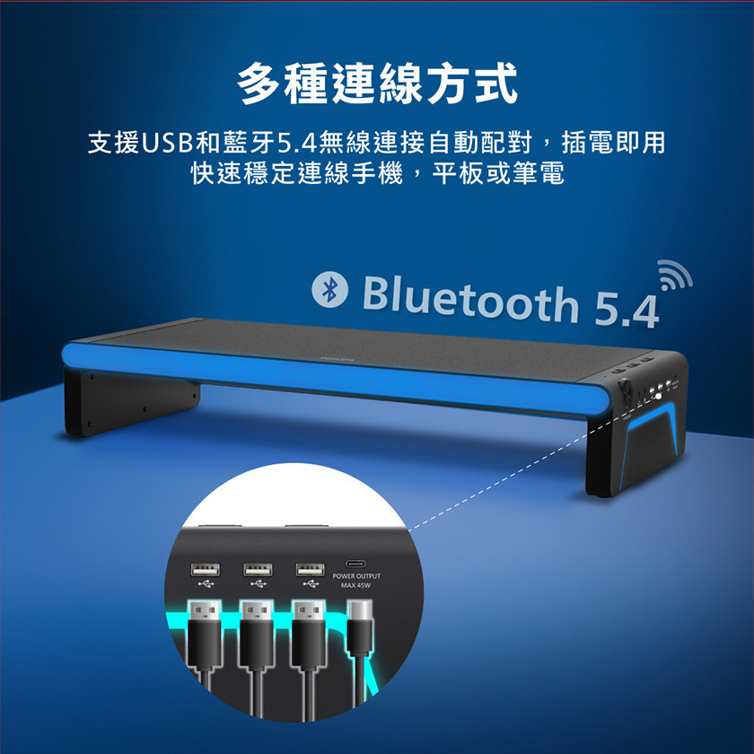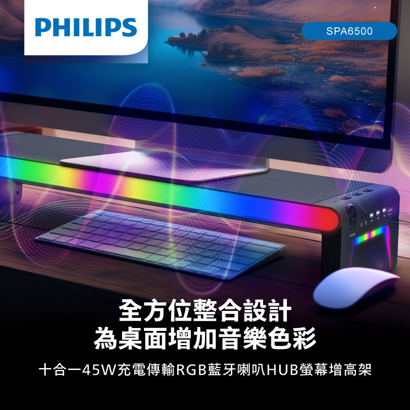 品牌品名:PHILIPS RGB十合一45W充電傳輸藍牙喇叭HUB螢幕增高架