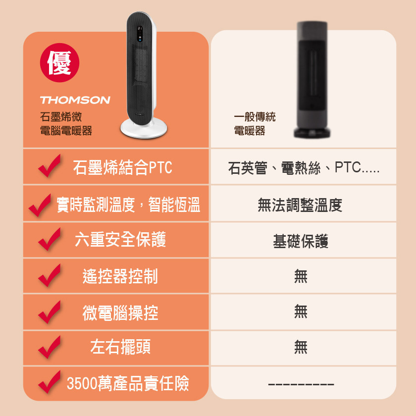 品牌品名:THOMSON 石墨烯微電腦電暖器