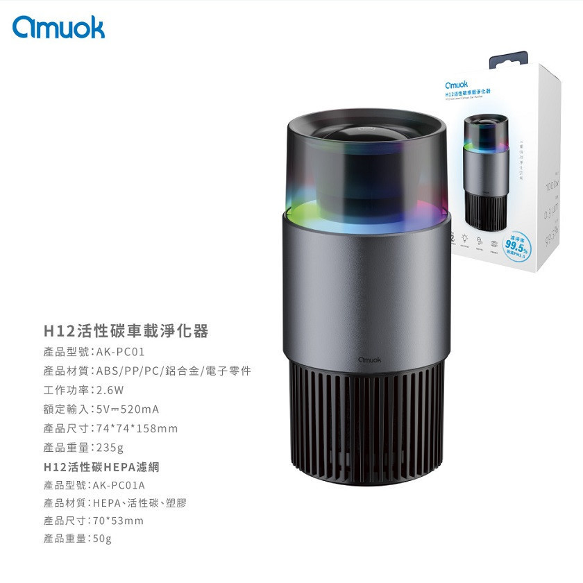 品牌品名:amuok H12活性碳車載淨化器