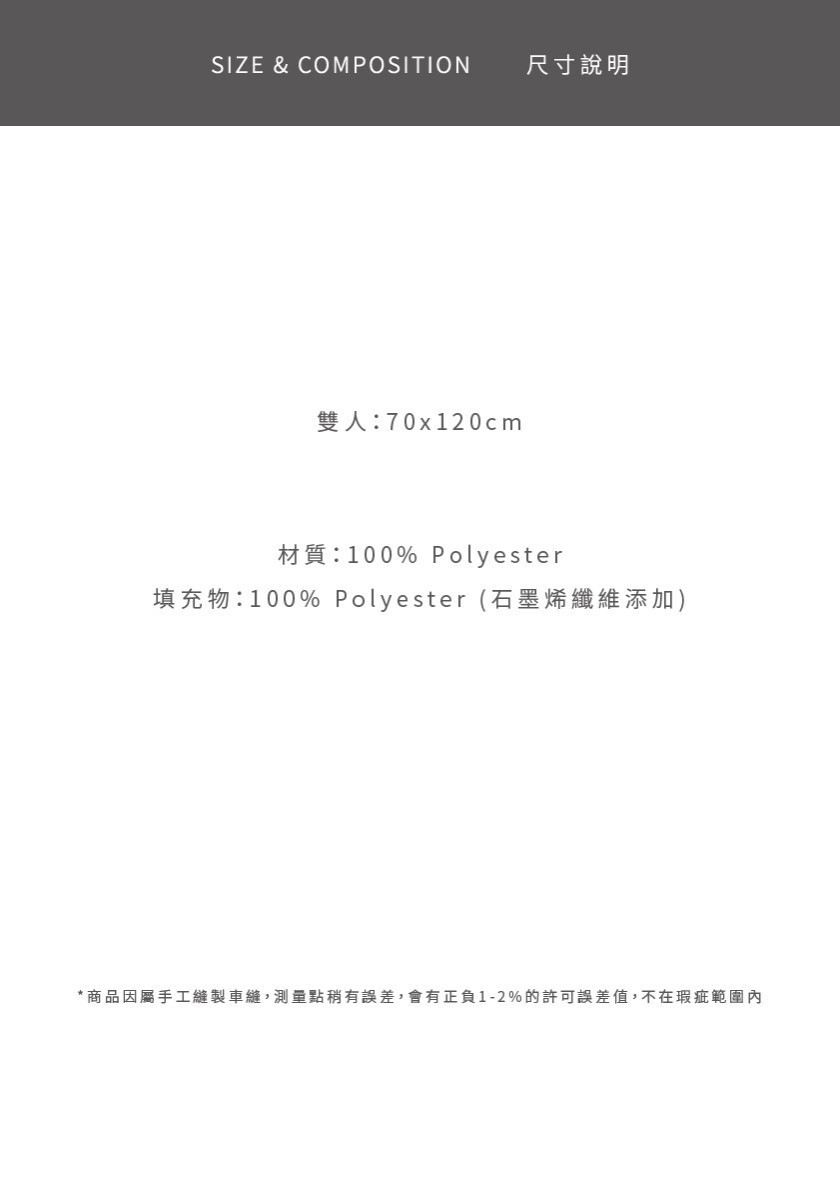 內容填充材質:100%聚酯纖維(石墨烯纖維添加)