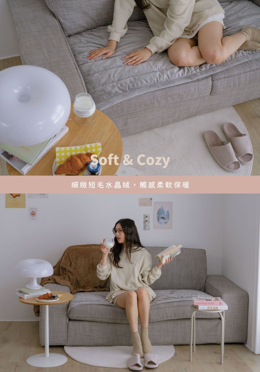 -水晶絨材質表面,柔軟保暖